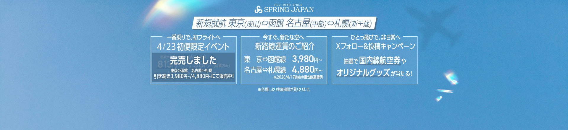 ● 2026年度夏ダイヤ 成田=新千歳線の販売と「スプリングセール」開催について