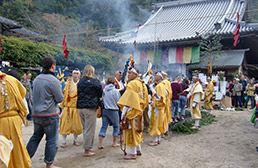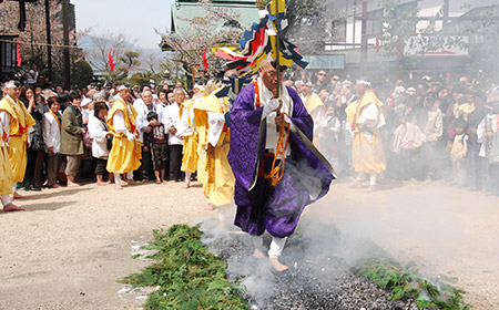 紅葉の秋色広がる11月、広島県宮島の大聖院で恒例の火渡り神事が行われます。火渡り神事は4月と11月に執り行われ、穀物の豊作や、参拝者の災いを取り除き心願成就を願い火のついた護摩木の炭の上を裸足で渡る儀式です。1,200年間燃え続けている『消えずの霊火』から移された霊火を炉壇に点火し、参拝者が願いを書いた護摩木を炎の中に投げ入れ、天高く火柱が立ち上がる様子は迫力があり圧巻です。『心頭を滅却すれば火もまた涼し』どんなに熱くても心の持ち方次第で火さえも涼しく感じるということわざに従い、願望成就を唱えながら挑戦してみてはいかがでしょうか。希望すれば一般の方も無料で参加することができます!