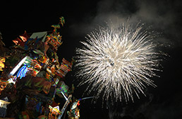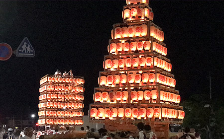 毎年お盆の時期に行われる『多久山笠』。このお祭りの主役は2台の人形山車と高さが6メートルにもなる提灯山車。色とりどりの人形山車は戦国絵巻を毎年再現。また組み立てから披露される提灯山車は、ろうそくがゆらめき幻想的で美しいです。この山笠が太鼓や笛の囃子に合わせて多久駅前を練り歩く姿に圧倒されます。他によさこいソーランや、バンドライブ、このお祭りの締めである1,000発の花火大会など盛りだくさんの内容となっています。