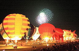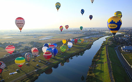 アジア最大級の熱気球の大会として、毎年秋に佐賀市嘉瀬川(かせがわ)河川敷で開催されています。1980年から開催されており、今では100機を超える熱気球が参加する大規模な大会になりました。熱気球の競技はスピードや高さではなく、いかにターゲットに近づくかを競っています。公式サイトでは主な競技の説明が掲載されているので、観戦に行く際はあらかじめ読んでおくとより楽しめること間違いなしです!期間中は、競技大会の他に、人気アニメキャラなどが熱気球になって登場するバルーンファンタジアや、とても幻想的な雰囲気を堪能できる夜間係留など、様々なイベントが開催されます。熱気球イベントの他にも、ご当地物産展やミュージシャンによるコンサートも行われ、連日大賑わいです。イベント期間限定で、会場のすぐ側に臨時駅「JRバルーンさが駅」が開設されます。自家用車でのご来場は混雑が予想されますので、公共交通機関をご利用ください。また、佐賀市の街なかにある「佐賀バルーンミュージアム」は、バルーンの魅力をいつでも体感できる日本初の気球博物館です。バルーンフェスタとあわせて、ぜひ足を運んでください。