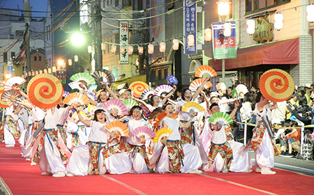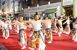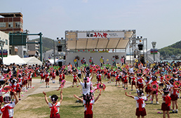 「尾道みなと祭」は、尾道港築港の恩人・平山角左衛門翁の功績をたたえ、尾道の発展のために、毎年春に盛大に開催されています。1935年から始まり、今年で75回目を迎えます。今では、尾道最大のお祭りとして市民に親しまれています。2002年の尾道駅前再開発の完了を期に、駅前がメイン会場となりました。創作踊り「ええじゃんSANSA・がり」踊りコンテストをはじめ、ファッションショー・屋台村・フリーマーケットや海上パレード、ヨットイルミネーションなど、地上だけではなく、海上でもイベントが開催されます。その他様々なイベントが市内多数の会場で開催され、尾道の中心街が活気にあふれます。