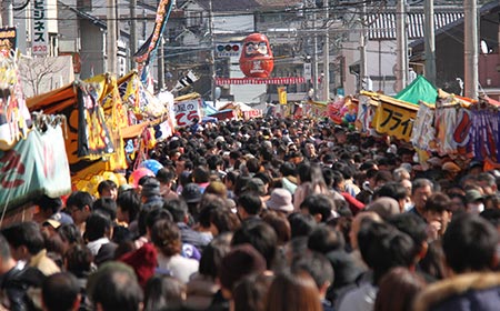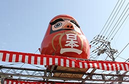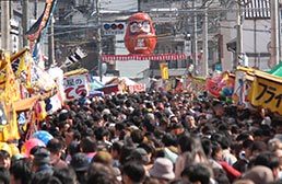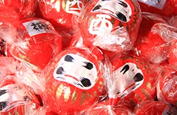 毎年2月に開催され、備後路に春を告げる「三原神明市」は、例年30万人以上の人出で賑わう西日本有数の縁日です。会場には、500軒を超える露店が軒を連ね、植木市やダルマ市が沿道に並び、催し物もあり、ダルマ供養塔も設置されます。特に地元の三原だるまの特徴は、ハチマキを巻いた細長いフォルム。「願いが成るように」という意味を込め、中に鈴などの鳴り物が入っています。三原だるまは、とても人気で早い時間に売り切れてしまうこともあるそう。数が限られているのでお早めに!