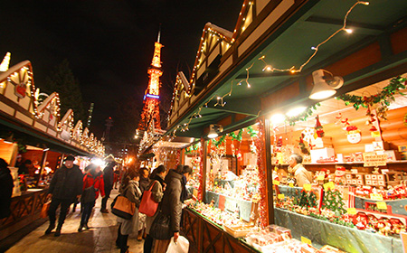 札幌冬の恒例イベント!ミュンヘン・クリスマス市では、雪とクリスマスという最高のシチュエーションが楽しめます。札幌とミュンヘンとの姉妹都市提携30周年を記念して、ミュンヘンを広く知っていただくために2002年から開催されており、ミニツリーや、ツリーに飾るオーナメントなどクリスマス雑貨がたくさん販売されています。他にも、ドイツ名物のソーセージや、ロースト・アーモンドなどのクリスマスならではのスイーツを味わうことができます。おすすめはホットワイン!凍えた身体を温めることができます。同時期に「さっぽろホワイトイルミネーション」も開催されており、駅前通などの中心街で行われているイルミネーションとあわせて楽しめます。運がよいとサンタさんに会えちゃうかも?