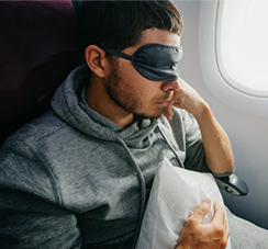機内の灯りや他の乗客がつける読書灯などに左右されることなく自分のリズムで睡眠時間を確保するためのマストアイテム!