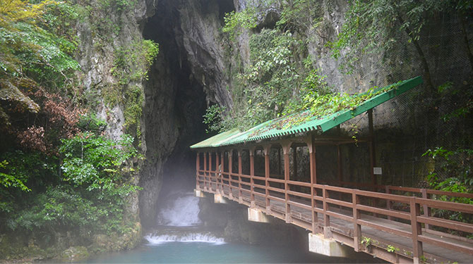秋吉台には、大小さまざまな洞窟が約450点在しています。その中でも、秋吉台の南側、地下約100mにある日本最大規模の鍾乳洞が秋芳洞です。全長8,500mのうち、約1kmが一般に公開されています。百枚皿、傘づくし、黄金柱などの奇岩・奇観が多く、国内の鍾乳洞の中でも人気があります。地下探検で普段とは違う冒険気分を味わえること間違いなし!動きやすい靴・帽子があると便利です。