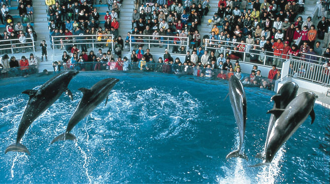 海響館は正式名称を下関市立しものせき水族館といい、総水量2400tで500種類の魚が展示されている中国地方最大の水族館です。下関ならではのふぐの展示や、イルカのショー、ペンギンの生活を見たり、直接触れ合えたりできる場所もあり、見所が満載です。