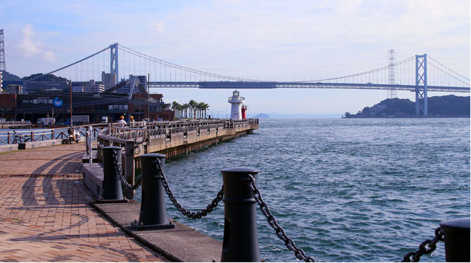 赤間神宮は壇ノ浦の戦いでわずか8歳で入水された安徳天皇を祀る神宮です。元は阿弥陀寺というお寺で、小泉八雲の怪談で知られている「耳なし芳一」の舞台ともなっている場所です。赤間神宮は幼い安徳天皇を偲び、竜宮城のような白と赤の建物をしています。目の前は道路を挟んで、すぐに美しい関門海峡が望める絶景スポットとなっています。