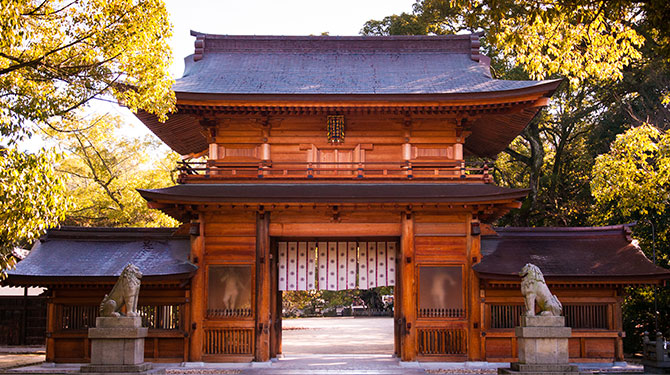天照大神の兄神を祀る神社。全国1万社余りの大山積神を祀る総本社でもあり、海の神・山の神・戦いの神として信仰を集める聖地。ここには源氏と平氏をはじめとする、多くの武将が武具を奉納したことから、数多くの国宝・重要文化財指定を受けた日本の甲冑の4割が集まっています。また、樹齢2600年ともいわれる天然記念物の大楠が御神木として鎮座しています。しまなみ海道を渡るなら、必見の歴史的スポットです。