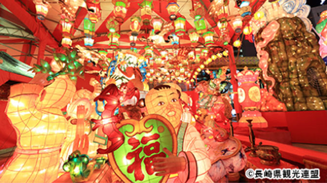 もともと、中国の春節(旧正月)を祝うお祭りとして開催されていたものが規模を拡大して、長崎ランタンフェスティバルとして開催されるようになりました。開催24年目を迎える、冬の長崎の一大イベントです。街中がランタンの赤・オレンジ・黄色で染められ、まるで異国に来たかのようなノスタルジックな雰囲気を味わえます。市内に複数の会場が設けられていますが、徒歩で見て回れる広さです。全会場制覇を目指しましょう!