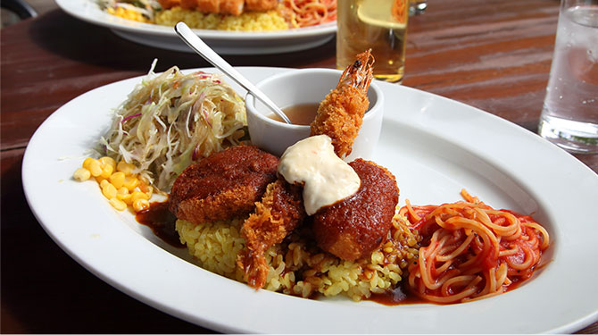 長崎のご当地グルメであるトルコライス!一皿に多種のおかずが盛り付けられた料理で、一般的にはピラフ・スパゲティ・豚カツの3種組み合わせが多いそう。お店によって味付けが異なるので、自分好みの味を探してみましょう。