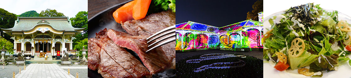 日本屈指のパワースポットの名高い武雄神社。パワーの源は、樹齢推定3000年の大楠の御神木にあります。また、長寿の神様、武内宿禰を主祭神として全部で5祭神を祀り、開運、厄除けにご利益があるとされています。間近で見る御神木の荘厳さには、ただ圧倒されます。佐賀に行くなら外せないスポットです。