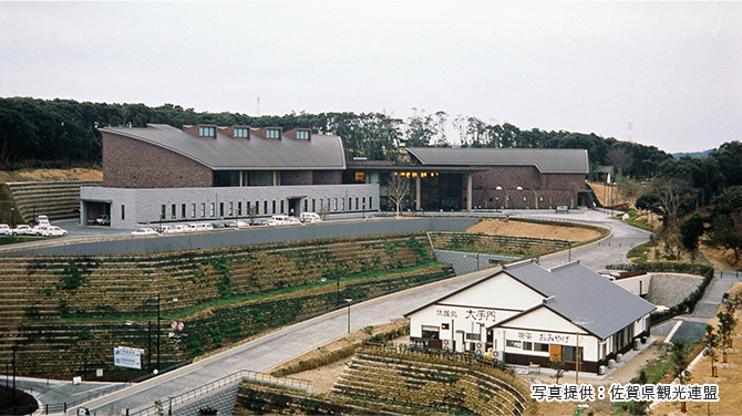 名護屋城跡に行かれる前に博物館に立ち寄って、少しだけ歴史を垣間見てはいかがでしょうか。博物館では『VR名護屋城アプリ』を公開しており、お手持ちのスマートフォンにダウンロードできるほか、タブレットを無料で貸し出ししています。名護屋城の在りし日の姿をアプリ上に表示しながら移動に合わせてCGも動くので、その当時のその位置の姿を見ることができます。AR機能もあるのでかつての名護屋城にタイムトリップした自分の姿を撮影することができます。『420年前の名護屋城』をタブレット越しに体験しながら散策してみましょう。