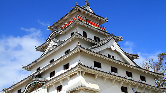豊臣秀吉の家臣『寺沢志摩守広高』が名護屋城の用材を転用して築城したと伝えられている唐津城。城が位置する満島山を中心に東西に延びる松原は鶴が翼を広げたように見えるので、舞鶴城とも呼ばれています。麓から天守閣までは石段が222段ありますが、有料の斜行エレベーターで昇ることもできます。昭和41年(1966年)に建てられた天守閣の中は郷土博物館になっていて、地階から5階までそれぞれ異なるテーマで演出されており、各階ごとに違った楽しみがあります。特に5階の展望所からは玄界灘、松浦潟、虹の松原などを一望でき、天下一品の景色を堪能することができます。唐津市のシンボルでもある唐津城に立ち寄ってみてはいかがでしょうか。※平成20年~令和3年(予定)まで石垣の工事が行われています。