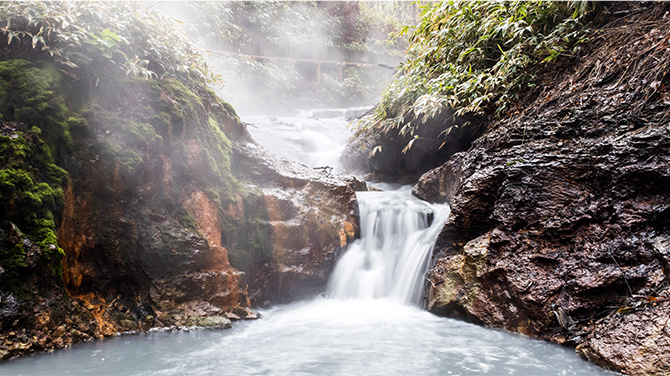 北海道を代表する温泉地の「登別温泉」。温泉が小川に流れ、天然足湯になっているスポットがあります。湯気が立ち込める川で、足湯が体験できる場所はなかなかないですよね。木々に囲まれた空間で、自然の川の流れを感じながら浸かると、より気持ち良いです。足湯に入る際はタオル持参で行きましょう。