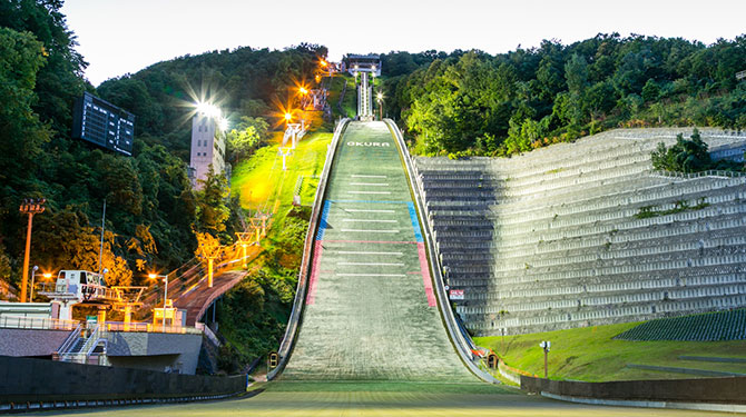 1972年の冬季札幌オリンピックなど、国内スキージャンプの競技会場として有名な大倉山ジャンプ競技場。頂上が展望台になっており、札幌市内を一望することが出来ます!スタート地点の真上に展望台があるので、スキージャンプの選手と同じ目線でコースをみることができ、あまりの高さに驚いてしまいます。また、今年リニューアルオープンされた札幌オリンピックミュージアムにて、オリンピックとパラリンピックの歴史を知ることが可能です。