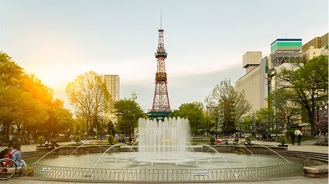 今年の8月に開業60年を迎えるさっぽろテレビ塔。テレビ塔から見える大通公園の景色は、さっぽろの代表的風景と言っても過言ではありません。テレビ塔の名の通り、以前は、札幌の電波発信塔の役割を担っていました。夜は、イルミネーションとしても見応えがあります。地上90mの位置に展望台があり、展望台まではエレベーターで上昇します。日が落ちてからは、札幌中心部の夜景を楽しむことができます。