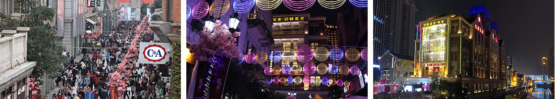 沙湖と東湖を結ぶ、楚河沿いにある武漢でも人気のショッピングスポット!楚河の北側は遊歩道として整備されており、南側がショッピング街として栄えています。ファッションはもちろん、飲食店や映画館、蝋人形館などもあり、多くの人で賑わっています。夜になると、ライトアップがとてもキレイ!武漢でショッピングを楽しみたいなら、押さえておきたいスポットです。