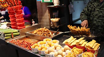 租界エリアと江漢路の間にある吉慶街。多くの飲食店が連なり、朝から夜まで、地元民や観光客で賑わいます。ココに訪れるだけでも、多くの武漢グルメが楽しめます。これからいちおしグルメとして紹介する、「熱乾麺」、「豆皮」、「鮮肉包」、「鮮肉湯包」は、吉慶街にも店舗があります。