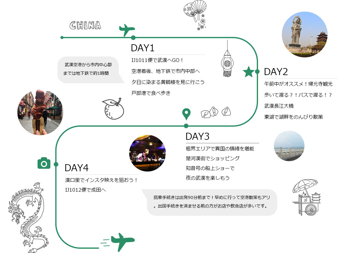 中国の真ん中あたり、湖北省東部に位置するメガシティ。大都市ながらも、市内を流れる長江をはじめ、東湖などの自然も多いです。租界エリアや黄鶴楼など昔ながらの建物も多く、高層ビル×歴史的建築物×自然の三つ巴を堪能することができる今イチオシの都市です。夏がとても暑く、重慶・南京と併せて3大ボイラーと呼ばれていることも…。観光中の水分補給はお忘れなく。おすすめの季節は春と秋。特に春は、東湖や武漢大学の桜がとてもキレイです。武漢は長江と漢江の合流地点でもあり、川を隔てて、漢口・漢陽・武昌の3つのエリアに分けられています。
